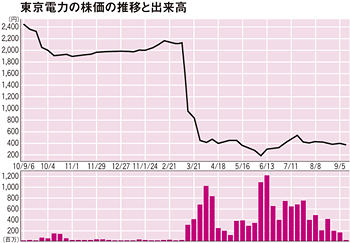東電の増資は昨年9月29日の取引終了後に発表されたが、株価はそれを予見していたかのごとく同月6日あたりから下がり始め、15日には75円も急落している。主幹事証券が払込銀行に事前連絡した21日以降はさらに売り込まれた。増資発表当日も大規模な空売りが行われ、出来高は通常の数倍まで膨れ上がって前日終値比7.8%も値を下げた。